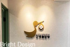 黄金のこうのとりが、皆様に幸せと安らぎをお届けするというイメージで、デザインさせて頂きました。